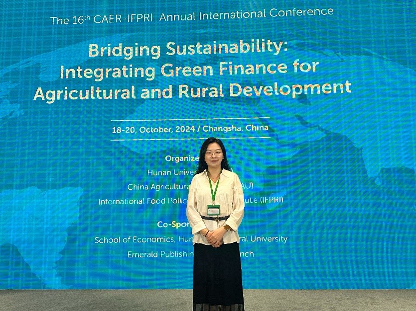 本届CAER-IFPRI国际学术会议,共设有18个分论坛,共有来自17个国家的176位专家学者围绕会议主题展示研究成果并就可持续金融与农业农村发展等议题进行深入探讨和交流。2026年世界杯官网2023级农林经济管理专业博士研究生李家璇在海报会议环节作了题为“Has Digital Villages Promoted Green Growth in Agriculture?”的海报演讲,该研究成果入选会议论文集,其选题和研究思路受到了与会专家学者Maxwell Mkondiwa(国际玉米小麦改良中心)、冯小龙(中国农业大学)、马旺林(林肯大学)的肯定,并为论文提供了系统性改进指导。
