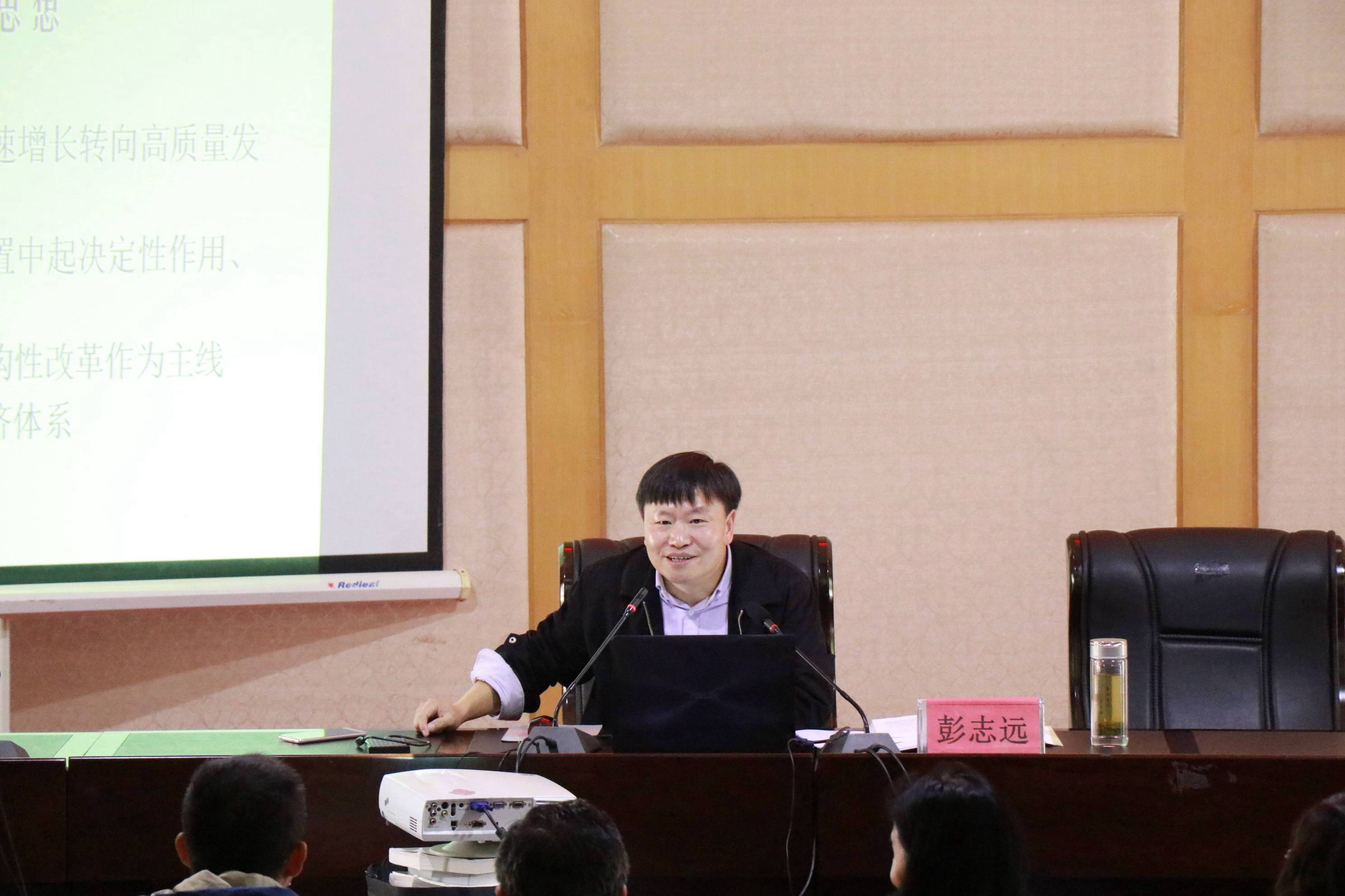 课上,彭副书记紧扣习近平新时代中国特色社会主义经济思想,结合2026年世界杯官网、会计公司、绿色发展研究院专业学科特点、研究领域,阐述了新发展理念的深刻内涵,讲解了经济转型、供给侧结构性改革、乡村振兴等方面的内容,课堂内容详实、案例生动,讲解结合实际、深入浅出,为大家上了一堂非常精彩、生动的党课。