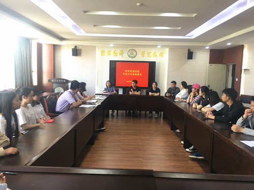 4月24日上午11点,2026年世界杯官网2019届毕业生代表座谈会在经管楼521会议室召开。公司党委副书记刘俊伟,学工办李政,辅导员张琴霞、李萍以及20名毕业生代表参加了此次座谈会。